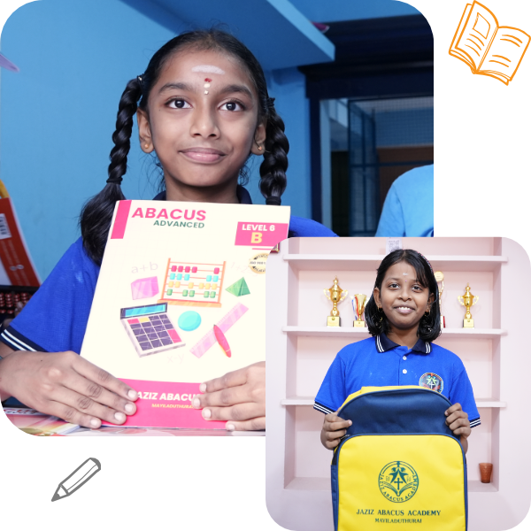 For children who find mathematics challenging, JAZIZ ABACUS turns learning into an enjoyable experience with simple, easy, and entertaining methods. Using colorful beads and interactive techniques, students learn to solve problems quickly while improving their memory and concentration. Regular abacus practice stimulates both sides of the brain, boosting logical thinking and imaginative power.